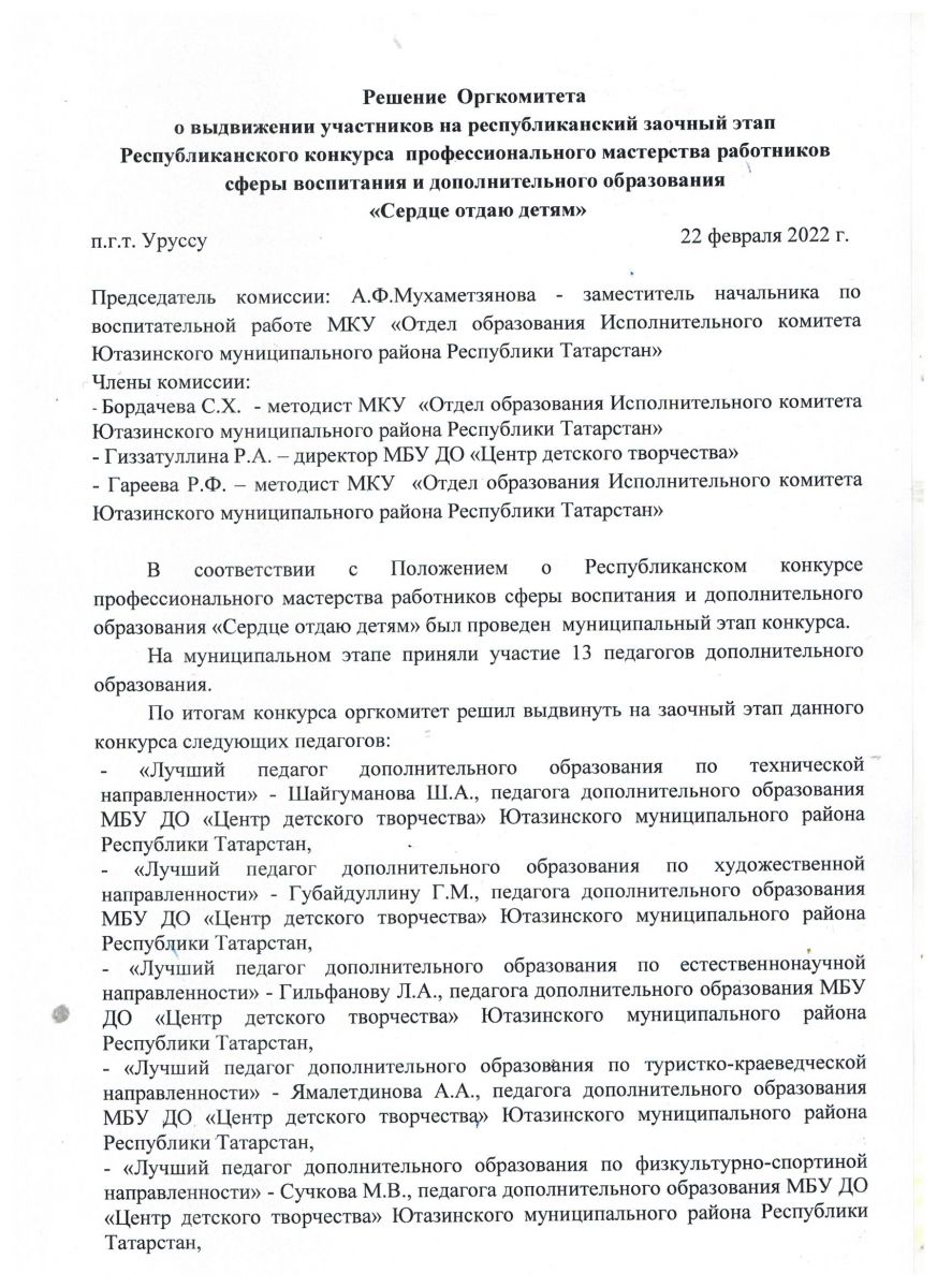 Муниципальное бюджетное учреждение дополнительного образования «Центр детского творчества» Ютазинского муниципального района Республики Татарстан/Татарстан Республикасы Ютазы муниципаль районы «Балалар иҗаты үзәге» өстәмә белем муниципаль бюджет учреждениесе