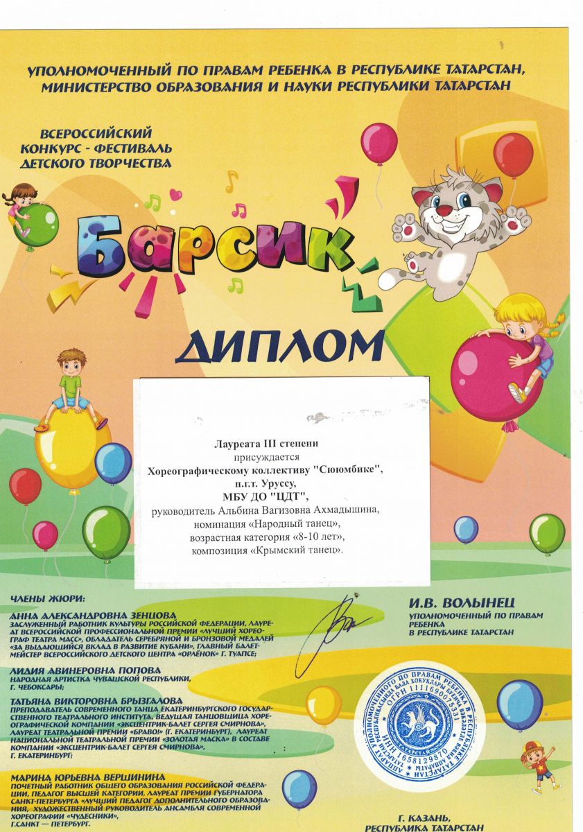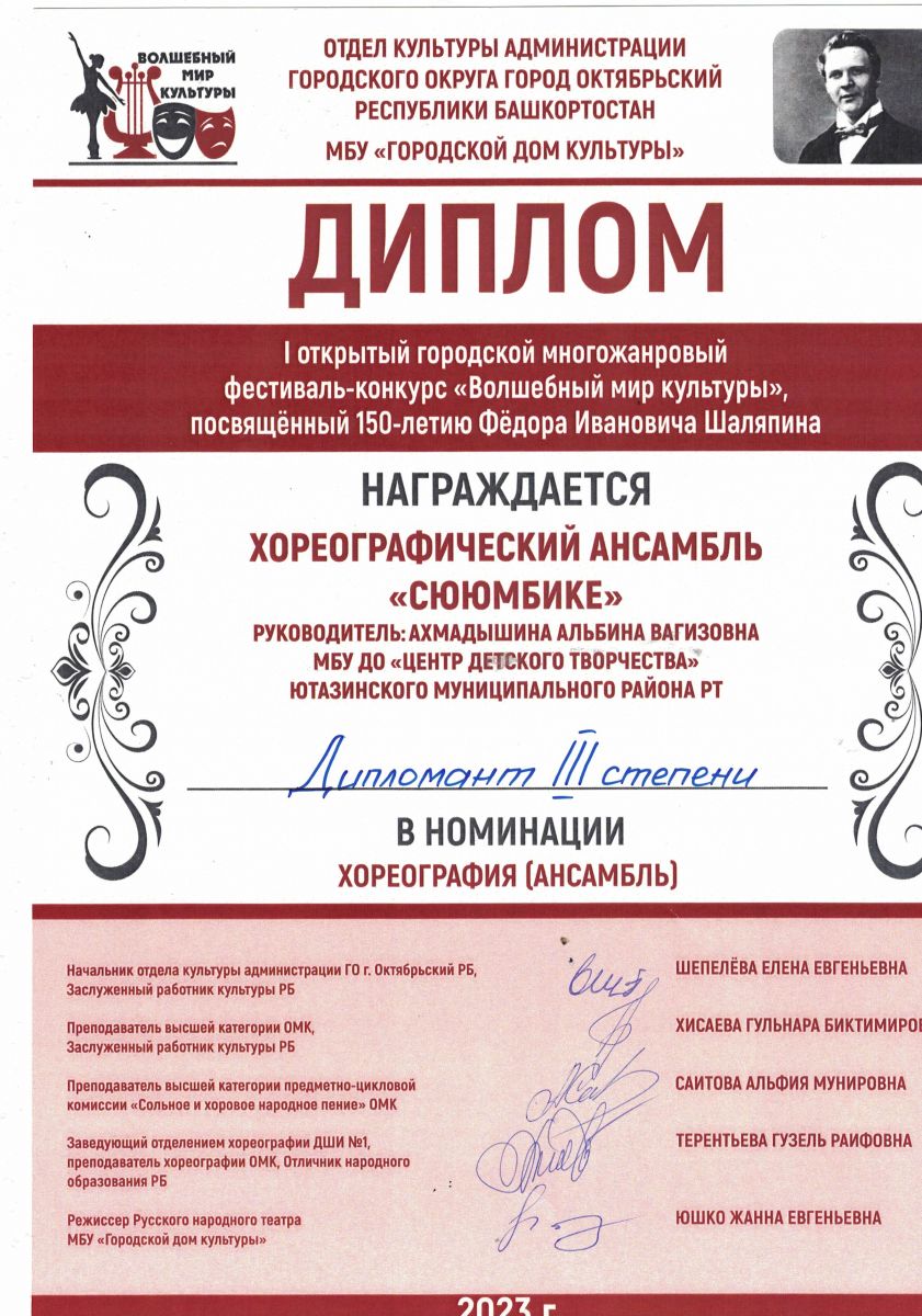/Диплом Лауреата 3 степени хореографический ансамбль Сююмбике Танцевальная карусель.jpeg