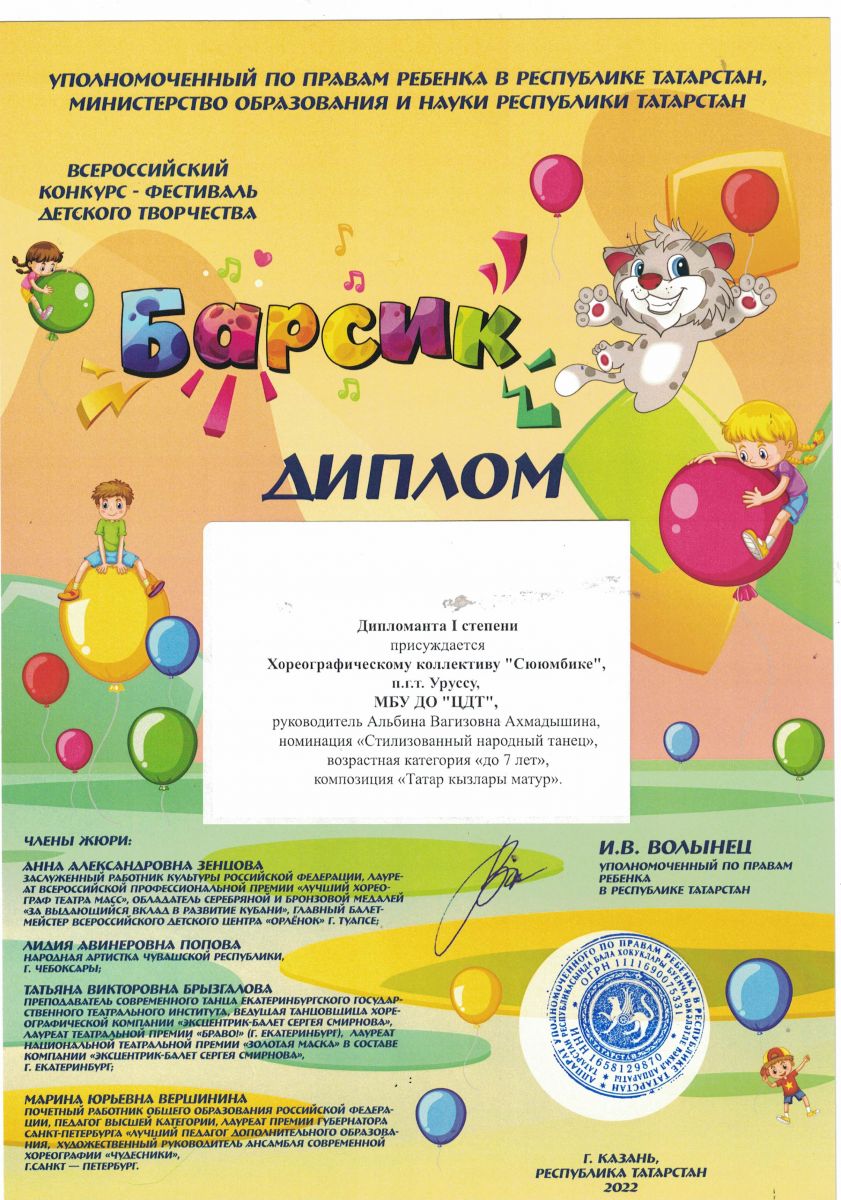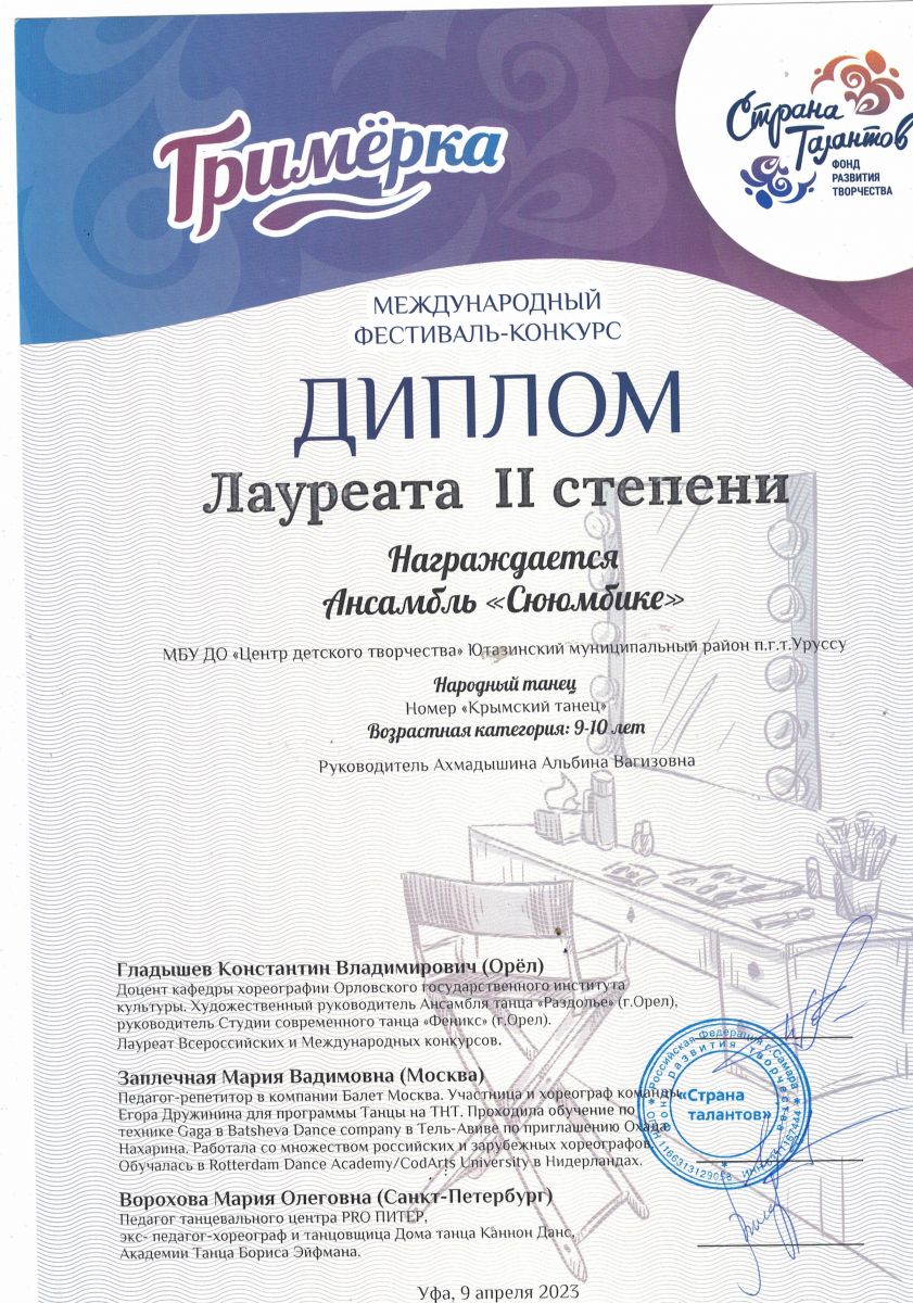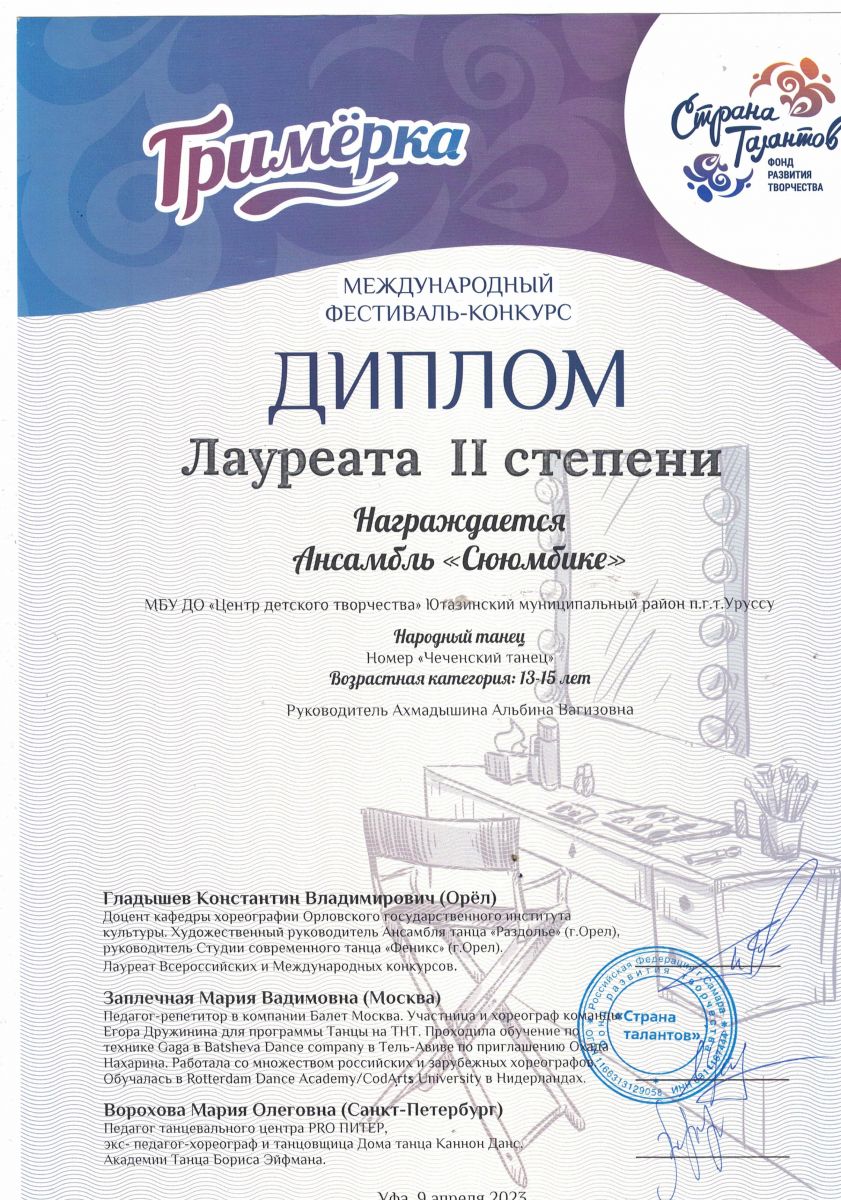 /Диплом 1 степени хорографический ансамбль Сююмбике 7-9 лет Международный фестиваль конкурс.jpeg