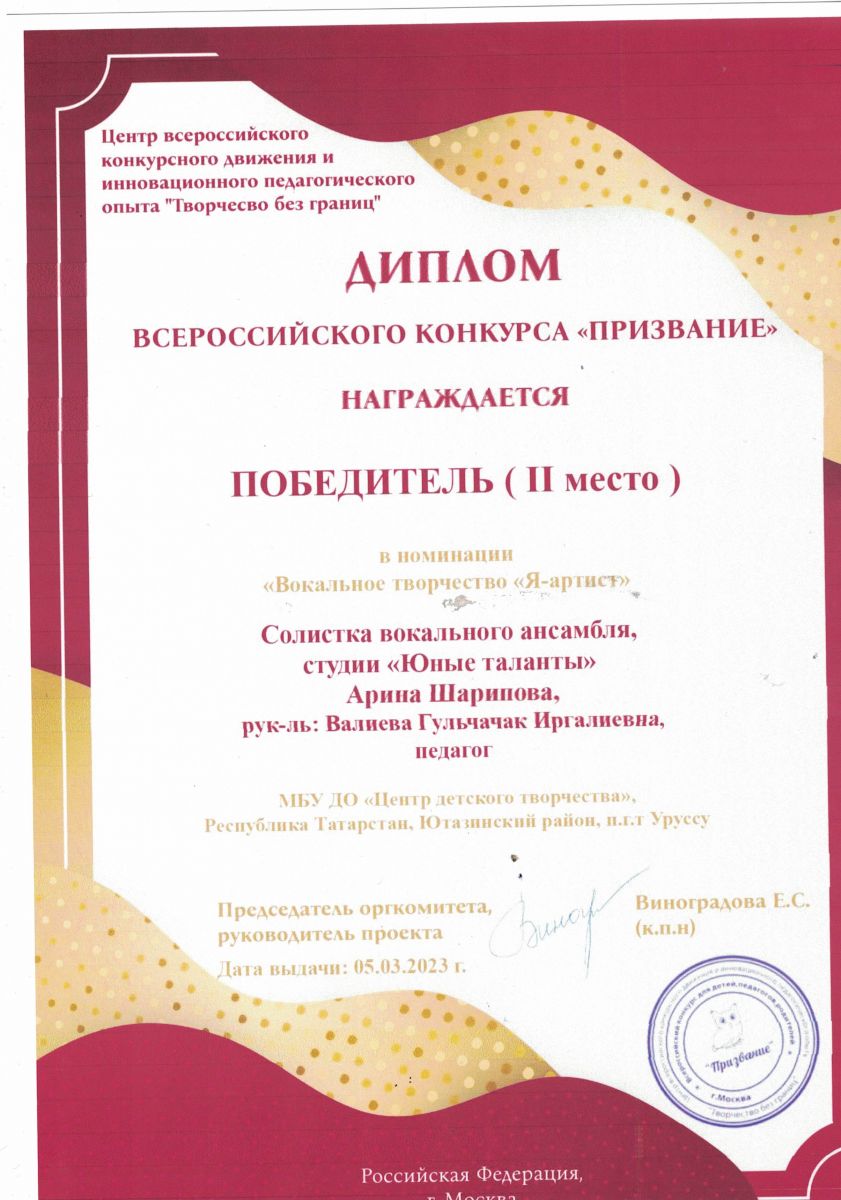 /Диплом 1 место всероссийского конкурса Призвание Марьям Насрутдинова.jpg