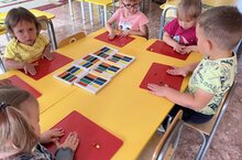 На данном занятии ребята учились аккуратно наклеивать изображения, закрепляли представления о предметах круглой формы. Также ребятишки учились описывать предметы по размеру, форме, цвету. С заданием все дети справились. Мальчики и девочки много играли, выполняли упражнения для пальчиков. -