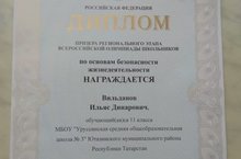 Вильданов Ильяс Динарович, ученик 11 класса МБОУ «Уруссинская СОШ № 3» стал призером всероссийской олимпиады школьников по ОБЖ. Молодец!