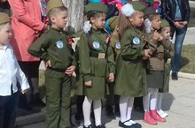 С целью формирование патриотических чувств, любви к Родине, воспитание у детей уважения к Российской армии и в честь Дня Победы 7 мая около монумента Славы состоялся смотр-конкурс строевой песни среди детей дошкольного возраста.