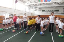 Выполнялись следующие конкурсы: перенеси кубик, попади в цель, веселые скачки, боковой галоп, передай мяч.