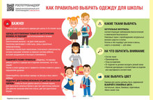 В преддверии нового учебного года Роспотребнадзор напоминает, что в первую очередь одежда для школы должна обеспечить сохранение детского здоровья. Родителям при приобретении школьной одежды для ребёнка важно помнить, что в ней он будет проводить 5–6 и более часов. В связи с этим, необходимо понимать, что одежда для школы, которая состоит только из синтетических волокон для этих целей не подойдет. Следует выбирать смесовые ткани с небольшим содержанием синтетических волокон.