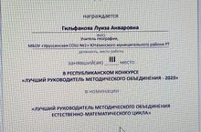 Учитель географии МБОУ "Уруссинская СОШ №2" Луиза Анваровна, стала победителем республиканского конкурса "Лучщий руководитель РМО"