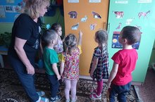Өлкән төркемдә комплекслы дәресне тәрбияче Марданова Зөлфия Мөдәрис кызы үткәрде. Аның максаты: кыргый хайваннарның тышкы кыяфәте һәм яшәү рәвеше үзенчәлекләрен белү, атау һәм аера белү; хайваннарның исемнәре, аларның яшәү урыны белән таныштыру; хайваннарны чагыштыру; аларның фикерләвен үстерү; хайванның фикерләвен тасвирлау; әвәләп ясау күнекмәләрен формалаштыру.