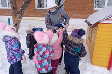 Бүген тәрбияче Мәрданова Зөлфия Мөдәрис кызы мавыктыргыч уен рәвешендә кече төркем балаларын кышкы табигать күренешләре белән таныштырды. Әйләнә-тирә мохиткә мәхәббәт, матурлыкка карата аңлаешлылык һәм табигатькә сакчыл караш нәкъ менә шулай тәрбияләнә. Кыш турында балаларга әкиятләр, әйтемнәр, табышмаклар һәм шигырьләр дә укыды, кышкы пейзажлар белән картиналар күрсәтте. Аннан соң балалар елның шушы чоры турындагы тәэсирләре белән уртаклаштылар.