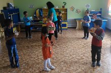 Бүген балалар "Кляксыч"уен-импровизациясен уйнадылар. Алар мимика һәм жестлар ярдәмендә төрле фигураларны сурәтләделәр һәм аларга җаваплар бирделәр. Уен-импровизация-мөстәкыйль эшчәнлек, анда балалар беренче тапкыр яшьтәшләре белән аралашалар. Аларны бердәм максат, уртак тырышлыклар, уртак мәнфәгатьләр һәм борчулар берләштерә. Уенда бала үзен коллектив әгъзасы итеп хис итә башлый, иптәшләренең һәм үзләренең гамәлләрен дөрес бәяләргә өйрәнә.