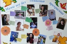 Ко Дню Матери был оформлен стенд "Мамы все без сомненья прекрасные". Каждая фотография мамы была закреплена словами детей, где они коротко рассказали, какая их мама.