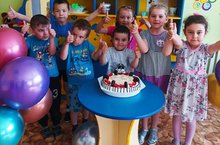 Туган көнне балалар өйдә генә түгел, балалар бакчасында да үткәрәләр. 30 май көне дә моңа охшаш хәл. Бу көнне Мортазин Рейналның туган көнен билгеләп үттек. Бу көнне төркемдә бәйрәм атмосферасы хөкем сөрә: бизәкле бина, аның хөрмәтенә шарлар. Болар барысы да баланы сөендерә. Тәрбияләнүчеләр башкаруында күңелле «КАРАВАЙ» җыры яңгырады. Барлык балалар да аны туган көне белән котладылар, җырлар җырладылар, хәрәкәтчән уеннар уйнадылар. Бәйрәм тәмамлангач, балаларны торт белән сыйладылар.