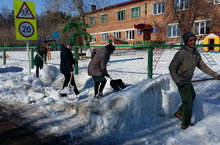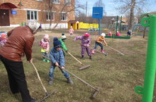 Сегодня педагоги совместно с воспитанниками вышли на уборку игровой площадки.