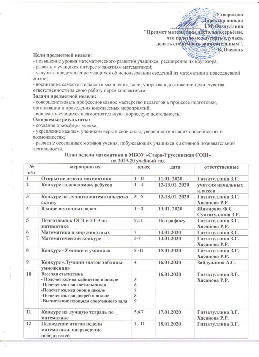 С 11 января по 18 января 2020 года в школе проходит неделя математики. Просим принять активное участие.
