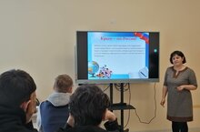 В рамках дня воссоединения Крыма с Россией учитель истории Рафикова С.Ф. провела исторический час " Крым и Россия". Основной целью исторического часа было осмысление учащимися исторических событий, формирование патриотизма, а также воспитание ответственности за нравственный выбор собственного поведения.