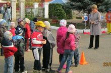 В нашем веселом детском саду воспитатель средней группы организовал для своих ребят целевую прогулку, направленную на закрепление дошкольниками знаний, полученных на занятиях по ПДД в группе.