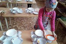 Цель: продолжать учить детей самостоятельно выполнять обязанности дежурных по столовой: сервировать стол.
