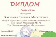 Муниципальное бюджетное дошкольное образовательное учреждение «Детский сад №1» комбинированного вида п.г.т. Уруссу Ютазинского муниципального района РТ/ Татарстан Республикасы Ютазы муниципаль районы муниципаль бюджет мәктәпкәчә белем бирү учреждениесе шәһәр тибындагы Урыссу бистәсе "1 нче санлы балалар бакчасы"