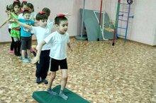 Воспитатель Солдатенко Г.М. провела образовательную деятельность в подготовительной группе по физической культуре. Где дети повторили ходьбу.и бег по кругу, ходьбу и бег врассыпную с остановкой по сигналу воспитателя; упражнения на равновесие при ходьбе по уменьшенной площади опоры с мешочком на голове, прыжки на двух ногах через препятствие.
