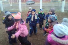 в "Детском саду 1" воспитатель Насырова К.О. с детьми старшей группы на прогулке проводила подвижную игру "Жмурки". Тем самым у детей развивается ориентир в пространстве с закрытыми глазами. Детям эта игра очень нравится. И даже воспитатель принимает участие - ищет детей с закрытыми глазами.