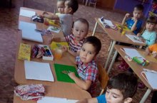 В старшей группе воспитатель Насырова К.О. проводила коллективную работу по ОД-аппликация, на тему "Дома нашего поселка" 22.09.2017