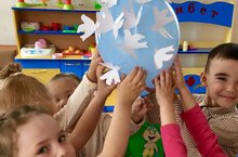 Своё понимание мира, доброты и дружбы дети отразили в изготовлении символа мира - белого голубя. Голубь как символ мира был избран неслучайно. Считается, что основанием для этого была библейская легенда, когда после всемирного потопа на корабль Ноя голубь принес оливковую ветвь – знак того, что Бог примирился с людьми. Пусть будет мир во всем мире!