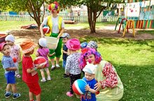 Летом дети больше времени проводят на улице. Обязательным компонентом каждой прогулки являются организованные взрослым подвижные игры. Подвижные игры на прогулке проводятся ежедневно продолжительностью 6 – 10 минут, с целью закрепления двигательных навыков. С их помощью на прогулке решаются оздоровительные, образовательные и воспитательные задачи. Сюжет игры должен быть простым и доступным пониманию, персонажи хорошо знакомы. Чтобы дети с удовольствием включались в игру используют атрибутику: шапочки, эмблемы птиц и животных, ягод, цветочки, веночки, платочки. Часто в подвижных играх используются крупные мягкие игрушки. Взрослый – организатор и участник игры.