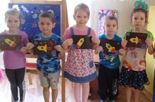 12 нче апрель көнне кечкенәләр төркемендә бәйрәм турында әңгәмәдән соң һәм иллюстрацияләр карау дан соң ирекле космик темага нәниләр аппликация ясадылар.