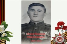 "Моего прадедушку звали Каримов Габдулгали. Он дедушка моей мамы. К сожаленью он не дожил до моего рождения, и я видел его только на фотографии. Но мама рассказала мне, что дедушка был на войне, вернулся живой, получил награды, создал семью, жил и работал после войны в Ютазинском районе.