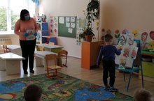 Цель: приучать детей бегать в разных направлениях, не наталкиваясь друг на друга, начинать движение и менять его по сигналу воспитателя, находить своё место.