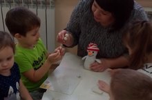 Лепим снеговичков.