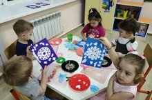 Рисование снежинок ватными палочками.