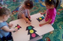 2. Закрепить представление детей о цвете (красный, жёлтый, зелёный), собрать его правильно, по шаблону.