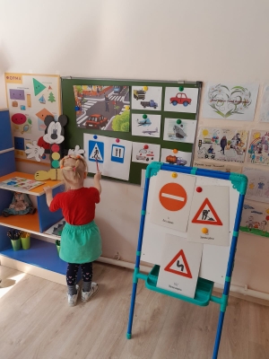 Воспитанники 2 младшей группы (педагог Маркелова Т.Н.) с помощью дидактических и подвижных игр закрепили названия дорожных знаков, закрепили значение сигналов светофора.