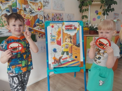 Воспитанники 1 младшей группы (воспитатель Полухина И.А) в минутку безопасности закрепили основы безопасного поведения в быту, с опасностью, исходящей от огня.