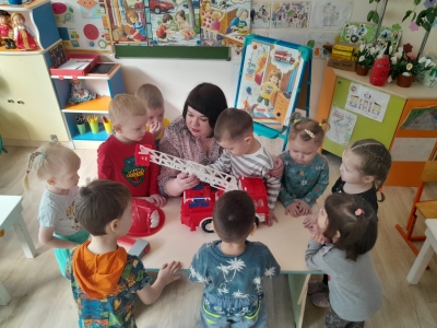 Во 2 младшей группе "Радость" (педагог Маркелова Т.Н.) в Единый день безопасности с воспитанниками была проведена беседа о пожарной безопасности, рассмотрели картинный материал, просмотрели мульфильм "Тили-бом, тили-бом..." Рассмотрели пожарную машину, познакомились чем пользуются пожарные при тушении пожара, повторили правила "С чем нельзя играть дома, чтобы не случился пожар".