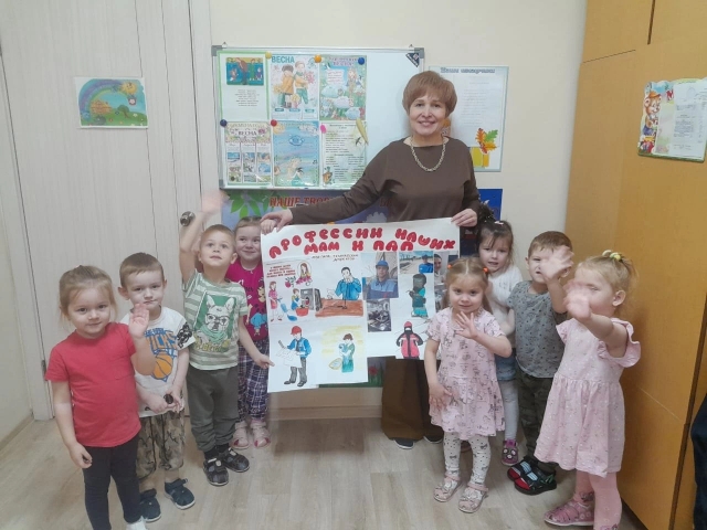 Ознакомление детей дошкольного возраста с профессиями взрослых - одна из важных задач социализации ребёнка. Для того, чтобы воспитать у детей позитивные установки к труду, важно обогащать их представление о самых разных профессиях, значении труда в жизни человека, его результатах. Во второй младшей группе "Ромашки" прошла тематическая неделя "Профессии", дети познакомились с различными профессиями взрослых, с трудовыми действиями, с орудиями труда и результатом труда взрослых. Была организована экскурсия на кухню детского сада, где дети познакомились с профессией "повар". Совместно с родителями была изготовлена стенгазета " Профессии наших мам и пап".