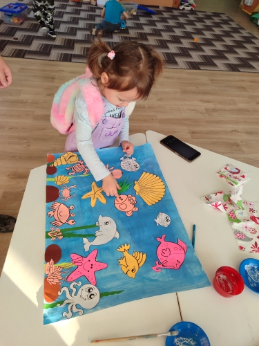 Во 2 младшей группе "Ромашки" (педагог Мухаметшина Л. И.) прошла тематическая неделя "Жители морей и океанов". В течение недели, дети знакомились с морскими обитателями, их средой обитания и характерными особенностями, пополняли словарный запас по теме, играли в разные игры, рисовали морских жителей, выполнили коллективную аппликацию "Подводный мир". Кульминацией данного мероприятия стало развлечение " Поиск сокровищ". Хочется поблагодарить родителей наших деток, которые всегда принимают активное участие в наших задумках!