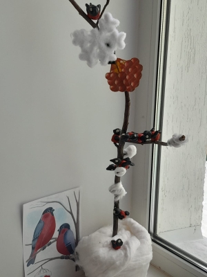 Вот такие снегири появились у детей второй младшей группы в группе. И снегирей детки слепили сами.