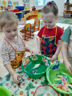 Играть с водой интересно и полезно. И холодное время года - не помеха. Воспитанники 2 младшей группы "Радость" (педагог Маркелова Т.Н.) знакомились с подводным миром, закрепили название морских жителей, послушали шум моря.