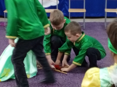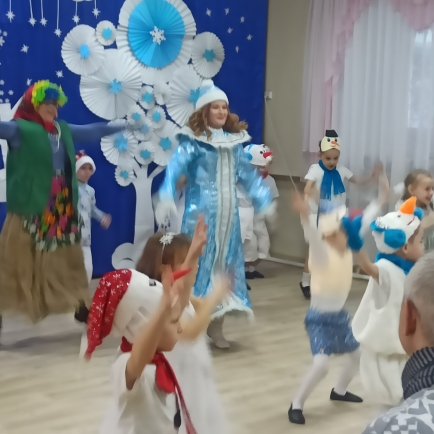 Воспитанники подготовительной группы (педагог Салимгараева К.Р.) окунулись в замечательную праздничную атмосферу. С самого начала представления Баба Яга увлекла детей в волшебный мир сказки. Дети окунулись в праздичную атмосферу приключений, поучаствовали в интересных конкурсах. С появлением Деда Мороза и Снегурочки начался настоящий праздник с песнями и танцами, хороводами вокруг елки. После представления все дети получили долгожданные подарки. Спасибо родителям, за подготовку чудесных новогодних костюмов. Спасибо и Вам педагоги (и не только педагогам), но и исполняющим роли героев! И конечно же, отдельное ОГРОМНОЕ СПАСИБО музыкальному руководителю Ризиде Рифгатовне, без вашего упорного труда, энтузиазма и задора не было бы столько ярких эмоций и впечатлений!