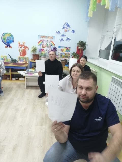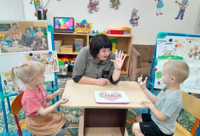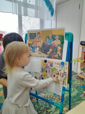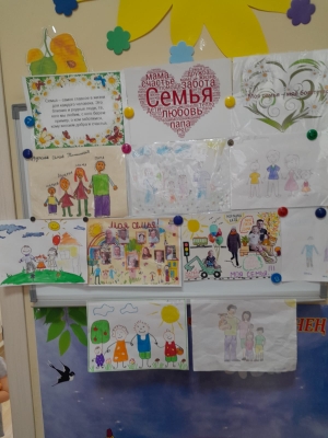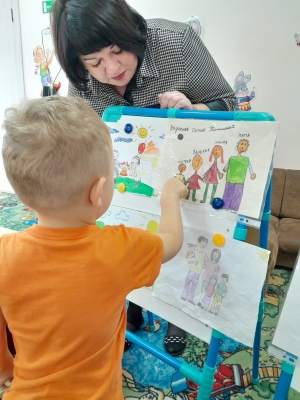 Воспитанник младшей группы (педагог Маркелова Т.Н.) беседовали на тему "Семья". Беседа строилась, как увлекательная игровая деятельность. Дети выполняли задания. Проводилась предварительная работа с родителями. Родители совместно с детьми рисовали свою семью, восптывая чувство семейной сплоченности. В результате дети с удовольствием рассказывали про свою семью (по свои рисункам). Ведь для ребенка важен совместный процесс участия в изготовлении какой-либо поделки, рисунка со своми самыми близкими людьми.
