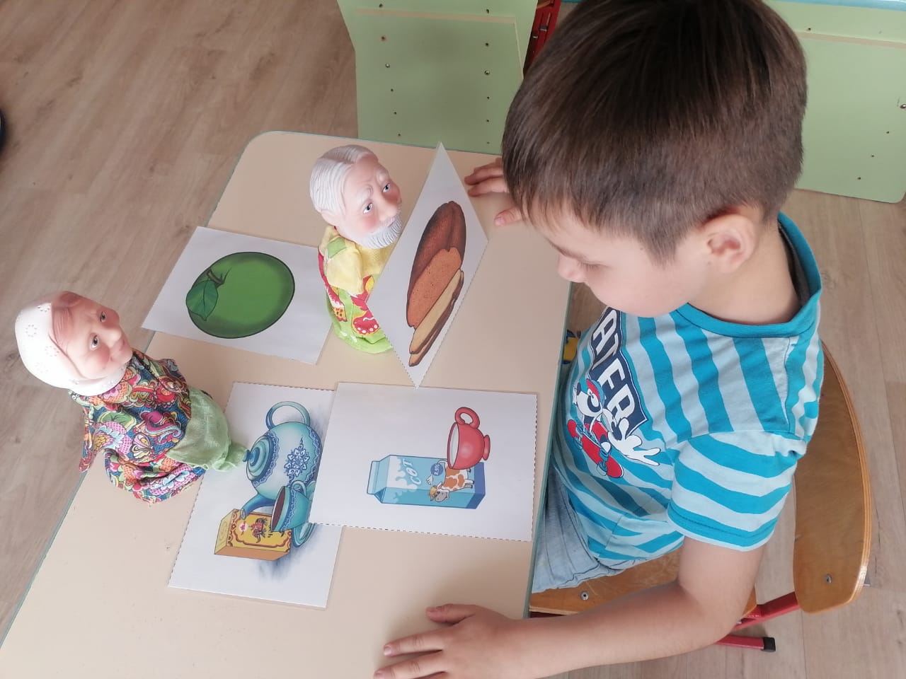 С помощью дидактической игры "Кто что любит?" воспитанники средней группы (педагог Иванова А Н.) закрепили названия овощей, продуктов, упражнялись в составлении предложений с определениями и глаголами на татарском языке./Дидактик уен ярдәмендә Кем нәрсә ярата? урта төркем тәрбияләнүчеләре (педагогы Иванова А.н.) яшелчә, азык-төлек исемнәрен беркетәләр, татар телендә билгеләмәләр һәм фигыльләр белән җөмләләр төзүдә күнегүләр ясыйлар.