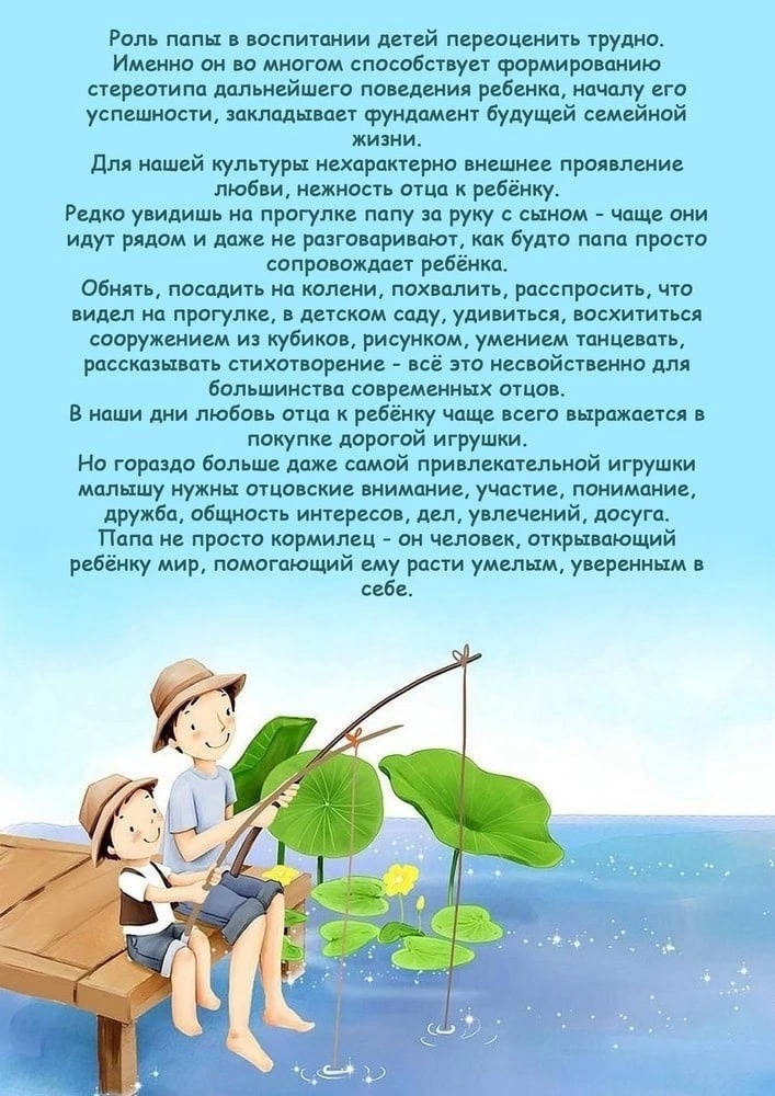 В России, начиная с 2021 года, каждое третье воскресенье октября отмечается важный семейный праздник – День отца. Этот праздник способствует сохранению традиционных семейных ценностей и подчеркивает роль мужчин в воспитании детей. В рамках работы по семьведению и в честь празднования Дня отца в группе «Ромашка» (воспитатель Мухаметшина Л.И.) с воспитанниками были проведены беседы на тему "Мой папа", «Кем работает мой папа», рассматривали фотографии «Я и мой папа». Были организованы игровые тренинги для детей "Назови ласково", "Скажи, чем ты можешь порадовать папу", "Чей ты помощник дома".