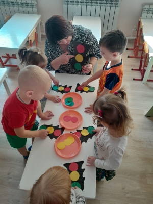 На занятии по лепке воспитанники младшей группы закрепили знания о светофоре, значения его сигналов, закрепили навыки лепить округлые предметы из пластилина круговыми движениями и расплющивать их дадонями, пальчиками.