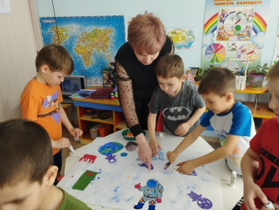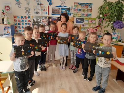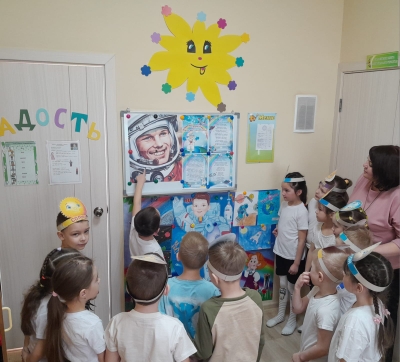 12 апреля наша страна отмечает – День Космонавтики. В преддверии этой знаменательной даты в подготовительной группе "Радость" (педагог Маркелова Т.Н.) прошло тематическое занятие «Космические дали». Цель: познакомить детей с историей возникновения праздника День космонавтики, расширение и обогащение знаний о космосе, сформировать у детей чувство гордости за наших космонавтов, желание быть похожими на них. Дети с большим интересом слушали рассказы о первом человеке, отправившемся покорять космическое пространство — Юрии Гагарине, о собаках Белке и Стрелке, которым удалось до человека побывать в космосе, узнали много интересного об учёных, стоявших у истоков развития космонавтики, о планетах Солнечной системы, о космических полётах.