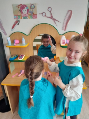 В дошкольном возрасте особое значение для полноценного развития детской личности приобретает дальнейшее приобщение к миру взрослых людей и созданных трудом предметов. Ознакомление с профессиями обеспечивает дальнейшее вхождение ребенка в современный мир, приобщает к его ценностям, направляет на развитие познавательных и гендерных интересов мальчиков и девочек среднего дошкольного возраста. Углубленное изучение профессий способствует развитию представлений об их значимости, ценности каждого труда. Правильный выбор профессии определяет жизненный успех каждого человека. После экскурсии воспитанников подготовительной группы в Салон красоты и ознакомления с профессией парикмахера. Воспитанники с удовольствием стали играть в сюжетно-ролевую игру «Парикмахер».