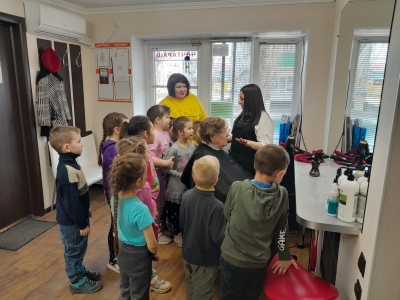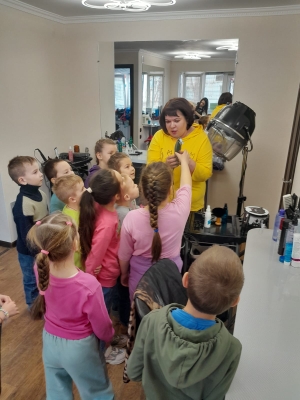 В рамках месячника по профессиональной ориентации воспитанники подготовительной группы "Радость", были на экскурсии в салоне красоты (педагог Маркелова Т.Н.). С целью обогатить знания детей о труде парикмахера, воспитывать ценное отношение к труду. Дети с большим интересом наблюдали за мастером салона, закрепили названия предметов, которыми пользуется парикмахер. По окончании экскурсии многие дети захотели стать парикмахером, чтобы дарить людям красоту и радость.