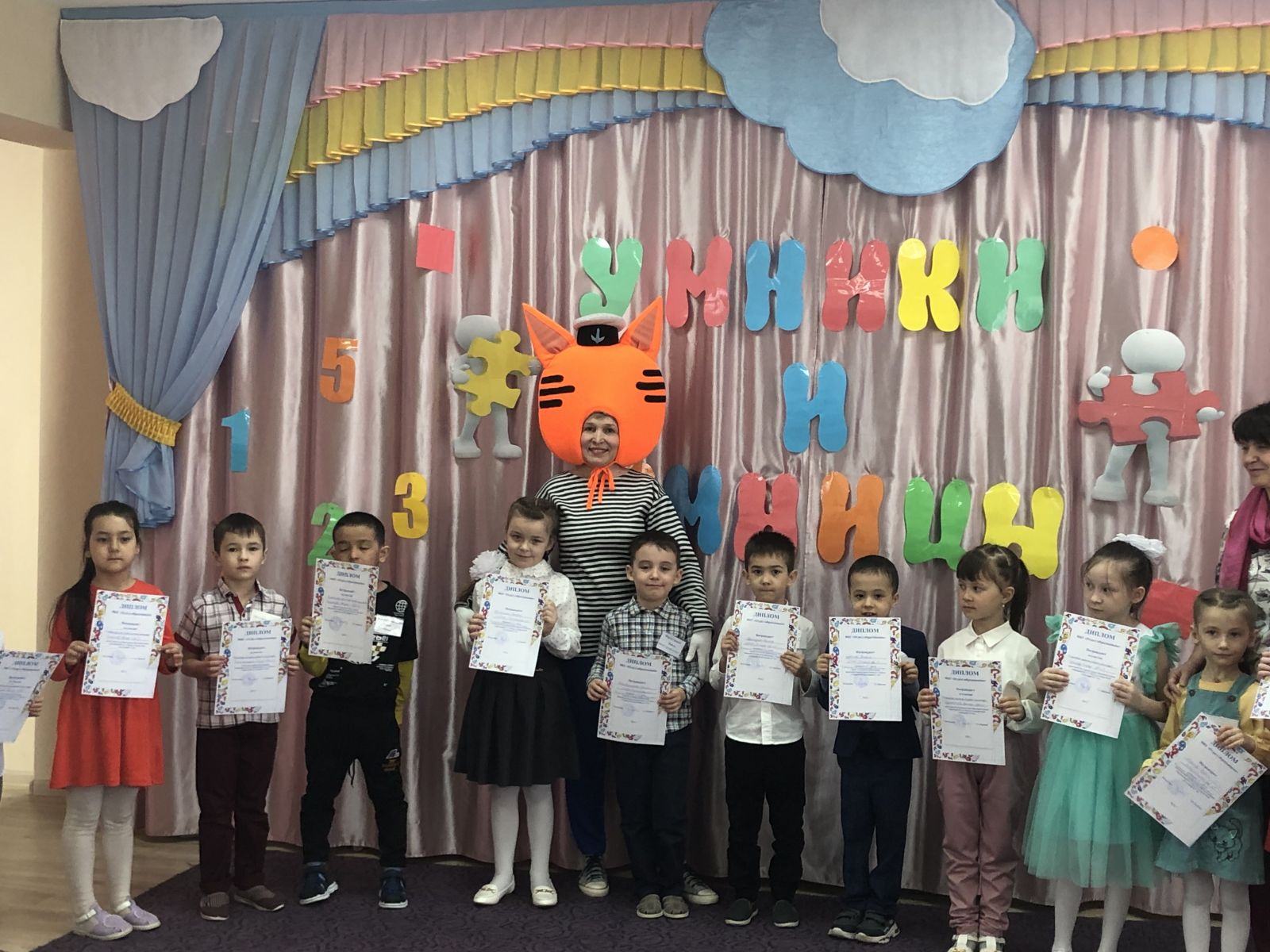 Сегодня на базе нашего детского сада прошла олимпиада по математике среди воспитанников детских садов нашего поселка «Умники и умницы» 14 ребят показали свои знания, умения, сообразительность, выполняя самые разнообразные задания по математике. Участникам олимпиады прошли много нелёгких, но интересных испытаний, показали свою смекалку и знания. По итогам олимпиады наши воспитанники показали отличные знания и были награждены грамотами Тимошина Валерия 2 место, ФархутдиновЭмиль 1 место. Молодцы так держать!!!