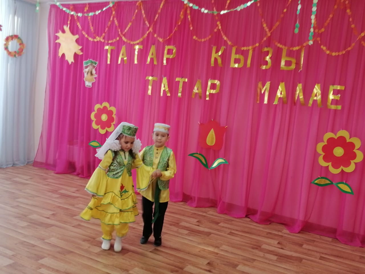 Буген, безнең балалар -Галимова Рада һем Гофман Яромир "Татар малае,татар кызы", дип атылган район конкурсында катнаштылар.Ул конкурс дүртенче балалар бакчасында утте.