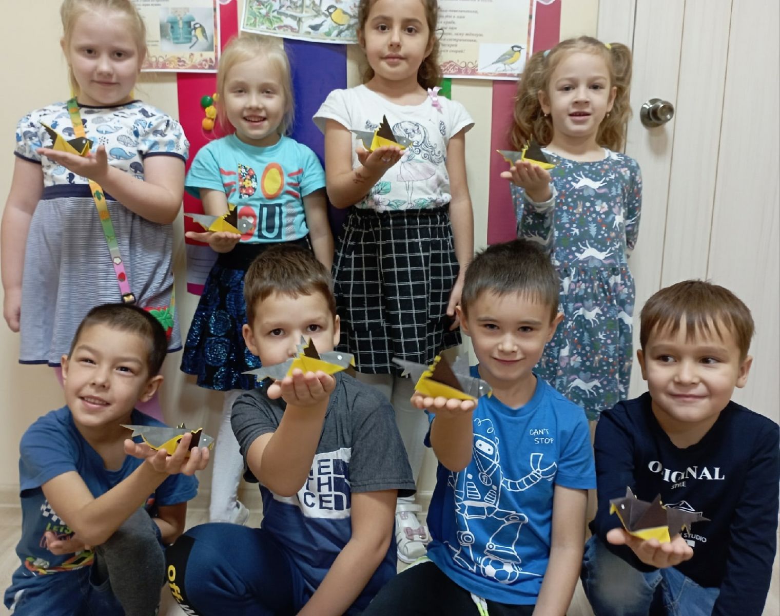 В преддверии празднования "Синичкиного дня" - 12 ноября, воспитанники логопедической группы (педагог Тимошина М. А.) создавали фигурки бумажных птиц. Известно, что искусство оригами способствует релаксации, развивает пространственное и логическое мышление, к тому же, большинство «крылатых» моделей складываются очень просто и не отнимают много времени. Симпатичный бумажный питомец не может летать, зато великолепно сидит на ладошке моих воспитанников.
